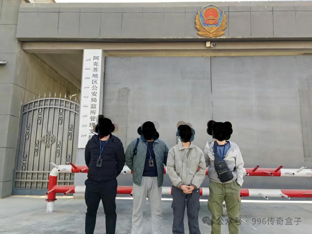 外挂作者(左3),陈某,11月20日于新疆阿克苏落网